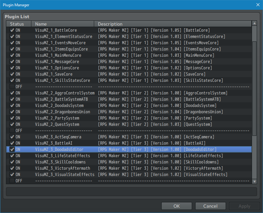 | 02:14, 17 September 2020 | Doodads PlacementMode.png (file) | 489 KB | Yanfly | 1 | ||
